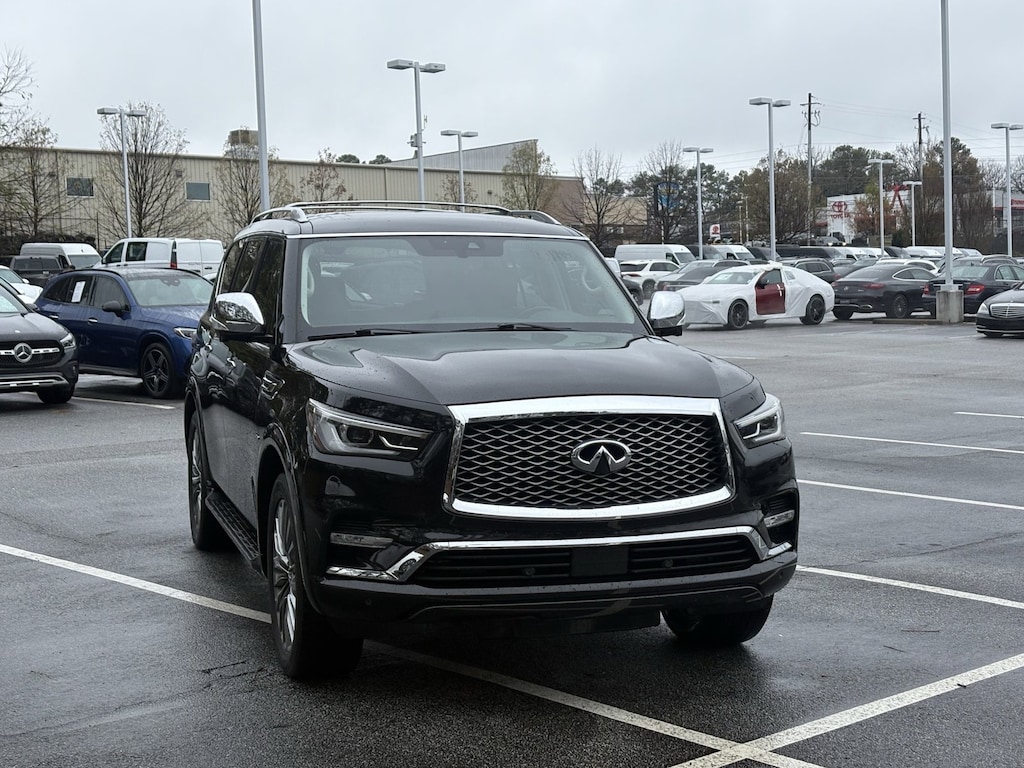 Mercedes Benz of Marietta has a wide selection of exceptional brand new and pre-owned vehicles to choose from. We appreciate the time you're taking to research in your car buying experience and we'll work hard in order to place you with the perfect vehicle to fit your needs. This INFINITI includes: [F01] DRIVER ASSISTANCE PACKAGE Lane Departure Warning Lane Keeping Assist Adaptive Cruise Control Blind Spot Monitor Cruise Control [K01] DELUXE TECHNOLOGY PACKAGE Cooled Front Seat(s) A/C Climate Control Auto-Dimming Rearview Mirror Back-Up Camera Woodgrain Interior Trim Heated Front Seat(s) Premium Sound System Headlights-Auto-Leveling [H01] THEATER PACKAGE Heated Rear Seat(s) CD Player Entertainment System MP3 Capability [W01] TIRE Tires - Front Performance Aluminum Wheels Conventional Spare Tire Tires - Rear Performance MINERAL BLACK SADDLE BROWN, SEMI-ANILINE LEATHER-APPOINTED SEATING W/QUILTING Leather Seats *Note - For third party subscriptions or services, please contact the dealer for more information.* Off-road or on the street, this INFINITI QX80 handles with ease. You deserve a vehicle designed for higher expectations. This INFINITI QX80 delivers with a luxurious, well-appointed interior and world-class engineering. It's not often you find just the vehicle you are looking for AND with low mileage. This is your chance to take home a pre-owned and barely driven INFINITI QX80. This INFINITI QX80 is so loaded out, it even comes with a premium entertainment package for you and your passengers to enjoy. Marked by excellent quality and features with unmistakable refined leather interior that added value and class to the INFINITI QX80 . This INFINITI QX80 comes standard with features that are essential in the 21st Century. However, INFINITI decided to take it one step further and add a handful of quintessential options that will undoubtedly add to this vehicle's quality and value. We want to EARN your business today! Mercedes Benz of Marietta, 810 Cobb Pkwy South, Marietta GA 30060.